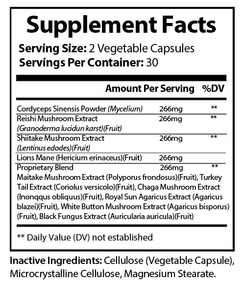 Mushroom Immune Mood Booster Chaga, Cordyceps, Reishi and Lion’s Mane.